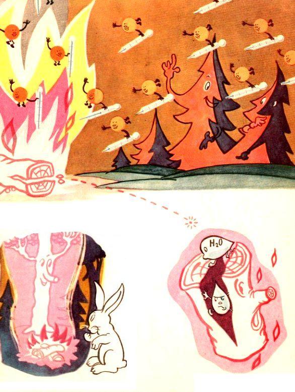 Ещё вопрос: почему сучья при горении трещат? Жидкости, заполняющие полости в древесине, превращаются при нагревании в пар, который с треском разрывает стенки полостей. Даже дрова, которые мы называем сухими, содержат до 20% влаги.