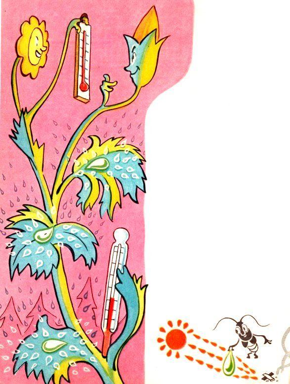 Многие ошибочно думают, что роса падает каплями с неба, как дождь. На самом деле она не падает, а постепенно садится на холодные предметы, выделяясь из прилегающего к ним воздуха. На листьях роса собирается в капли, которые легко скатываются при встряхивании. Они не растекаются по листу тонким водяным слоем потому, что кожица листа покрыта восковидным веществом, не смачиваемым водой. Это очень важно для жизни растений: если бы роса или капли дождя растекались по всему листу, вода закупорила бы те мельчайшие отверстия («устьица») в его кожице, через которые растения дышат. В некоторых случаях, однако, капли на листьях приносят растениям и вред: водяные шарики, как зажигательные стёкла, могут собирать солнечные лучи и причинять растению ожоги. (Поэтому, между прочим, не следует поливать водой растения при солнечном сиянии).