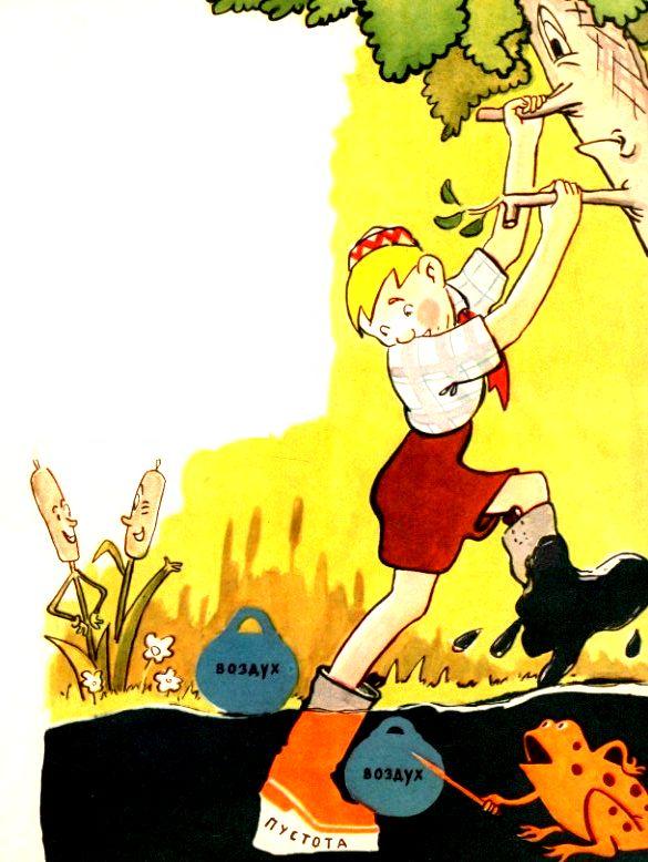 Ходить по болоту ещё утомительнее: ваши ноги увязают так, что извлечь их стоит большого труда. Любопытно, что, вытаскивая ноги, увязшие в болоте, вы должны бороться не столько с болотистой почвой, сколько с воздухом! Дело в том, что, когда вы вынимаете ногу из вязкого грунта, под подошвой, как под поршнем воздушного насоса, остаётся пространство с разрежённым воздухом. В этом пространстве воздух напирает слабо; между тем, наружный воздух давит с неослабленной силой. Вытаскивать ногу приходится против давления наружного воздуха; ноги присасываются к почве, как кровососные банки к коже. Стараясь вытащить одну ногу, вы опираетесь на другую, которая от этого ещё глубже увязает. Попав в болото, люди зачастую оказываются поэтому не в силах выбраться из него без посторонней помощи.