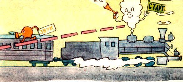Какие наблюдения можно сделать, слушая эхо? Вы стоите на открытом месте, а метрах в 35 от вас стена леса. Вы хлопнули в ладоши; через сколько времени донесётся эхо? Рассчитаем: до леса 35 метров да столько же обратно; значит, звук должен пробежать 70 метров. Вы уже знаете, что звук пробегает 330 метров в секунду; на пробег 70 метров ему понадобится 1/5 секунды. За этот промежуток времени отрывистый звук хлопка успевает замереть; эхо поэтому не сливается с породившим его звуком, оба звука слышатся раздельно. Такие короткие односложные слова, как «да» и «нет», произносятся менее чем в 1|5 секунды. Поэтому односложное эхо можно ясно слышать, находясь всего в 30-40 метрах от преграды.