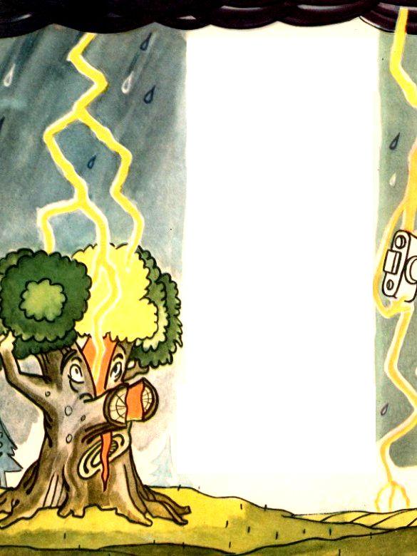 Как вести себя во время грозы? Очень опасно стоять вблизи громоотвода. Если гроза застигнет вас вне дома, не ищите защиты под одиноким деревом и не держите в руках длинных предметов-удилище, палку и т. п. Опасно находиться около огня, будет ли это костёр на поляне или дрова в кухонном очаге.