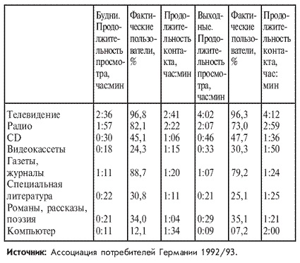 Итак, будет ли уместным говорить о дезинформации? Нет, в конце концов, мы говорим здесь об излюбленном способе заполнения свободного времени граждан. Просмотру телевизора отдается большее предпочтение, чем простому «ничегонеделанию» или походу в гости. Кстати, 3 % телезрителей умудряются смотреть два канала одновременно. Количество воспринимаемой информации в этом случае около нуля.