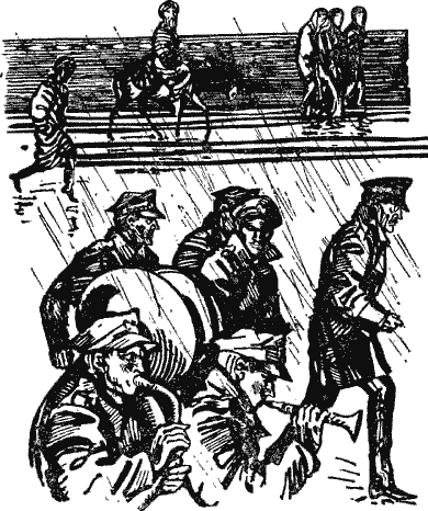 Эскорт вооруженных солдат старался идти в ногу, но по такой грязи это было трудно: солдаты скользили, сбивались, а один даже упал, сразу нарушив чинность процессии.