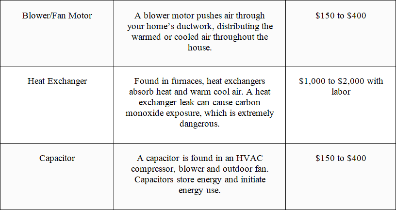 HVAC Service Cost by Part