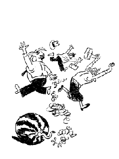 В очереди заметно опало векторное напряжение вперед. Я внимательно постучал по корке - арбуз как арбуз, круглый. Правда, грипп мог сидеть внутри.