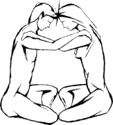 Сядьте напротив друг друга касаясь коленями. Посидите некоторое время, глядя в глаза друг другу. Затем медленно положите руки на плечи партнеру, закройте глаза и соедините ваши головы вместе (см. рис). Оставайтесь в таком положении до тех пор пока вам не захочется разъединиться. Но не делайте это сразу, задержитесь на некоторое время.